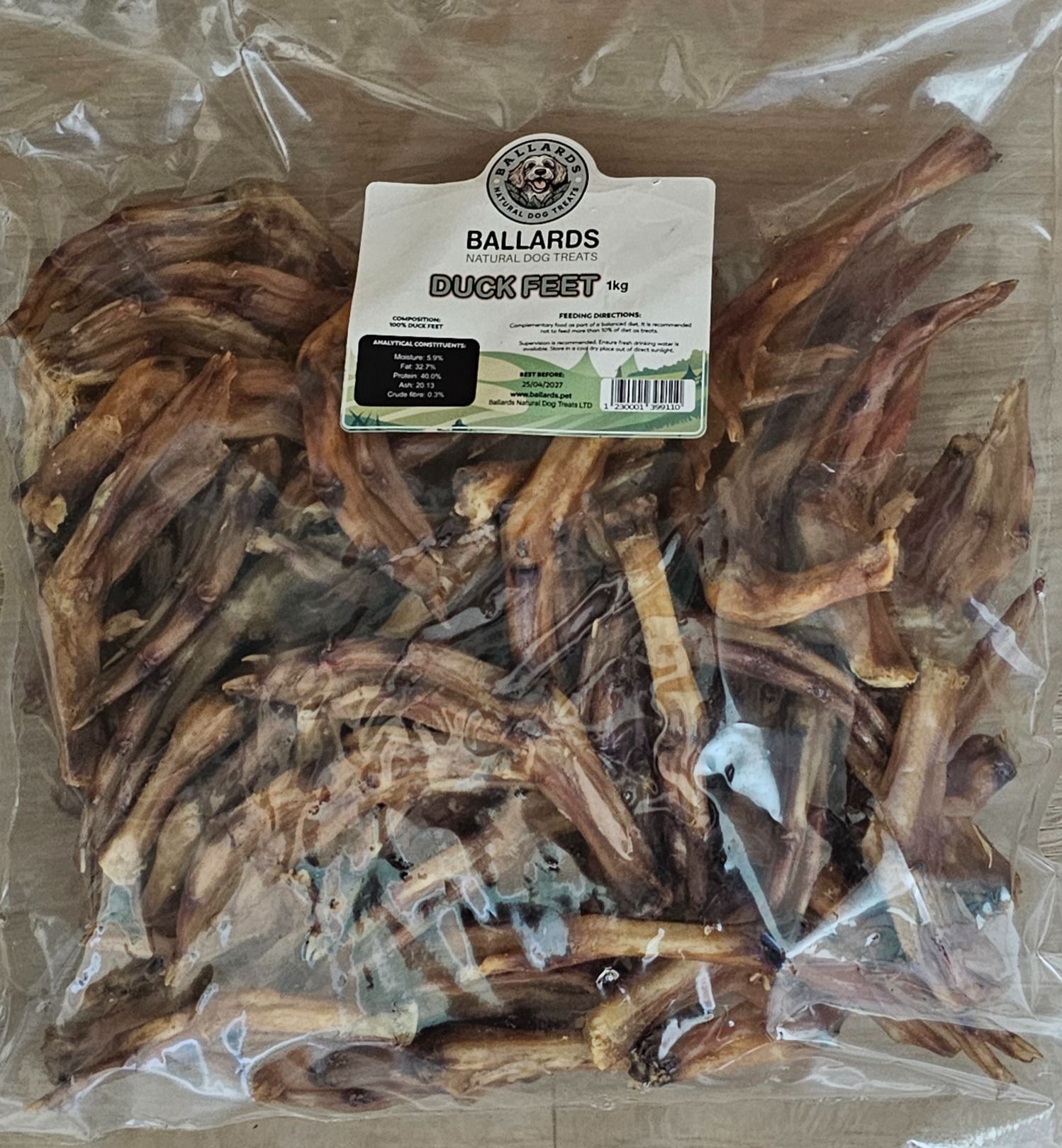 If your dog enjoys chicken feet as dog treats, then they will love duck feet. Duck feet are highly digestible, high in protein and low in fat. Suitable for active and growing dogs, packed with natural glucosamine and chondroitin to aid joint health. Duck feet are gently air-dried to preserve more vitamins and nutrients. Duck feet promote healthy teeth and gums through the act of chewing. They are high in protein to support your dog’s overall well-being. Free from any preservatives, additives and chemicals.